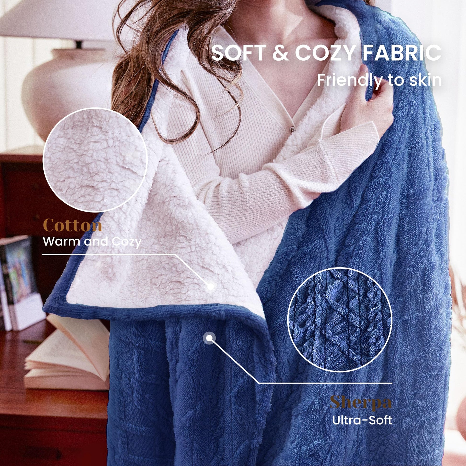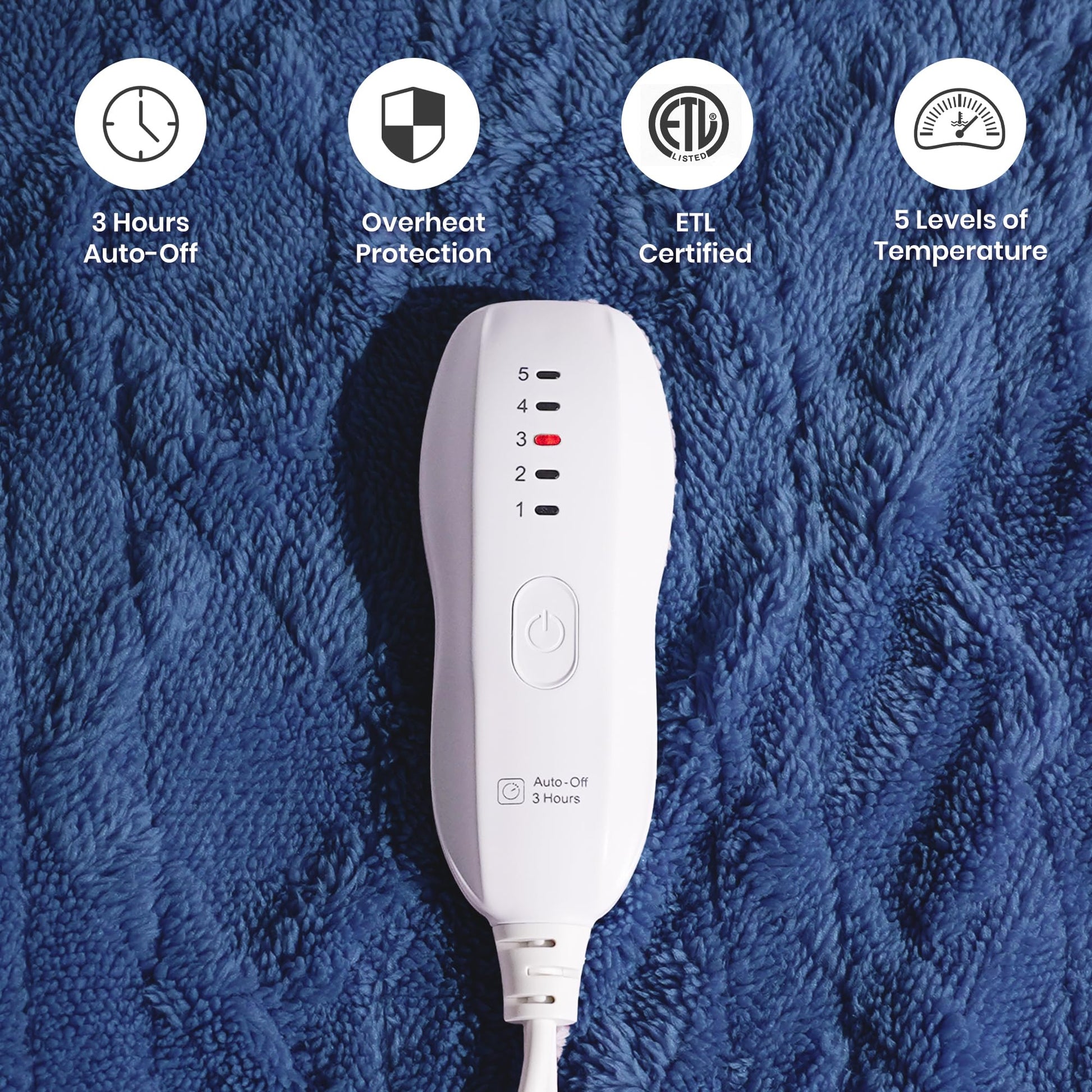- Auto-off Function:The heating blanket has 3-hour auto-off function for added safety,and this heated blanket with strict ETL and FCC safety certifications.If you go to sleep,the heated throw blanket will automatically cut off power after three hours,not only to save electricity but also to increase security,so that you can sleep in peace.