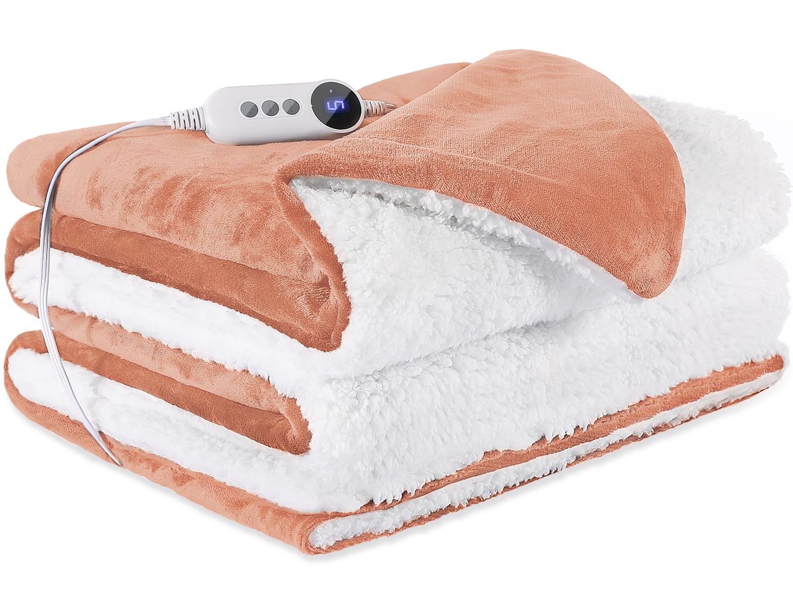STHYTON Heated Blanket, Heated Throw 50"x60" - Soft Cozy Flannel & Sherpa Fabric Dual-Sided, 9 Heat Settings & 2-10 Hours Auto Off, Electric Heated Throw for Home Office, Light Coral Pink