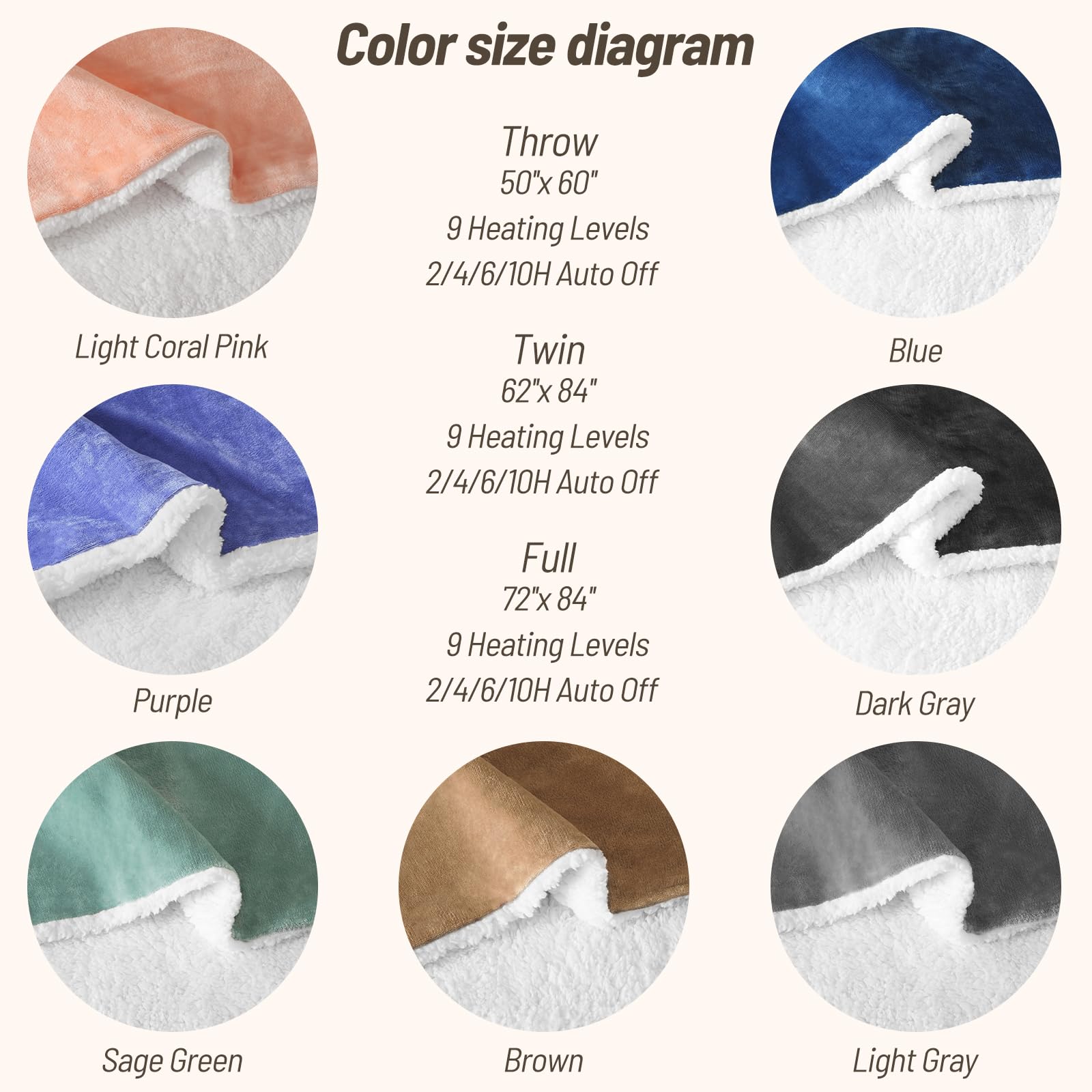 - 9-Level Temperature Control: Our heated blanket features a 1-9 level temperature adjustment ranging from 80℉ to 109℉, with a default setting at 5/6 for optimal warmth. Easily customize your comfort level based on different seasons or personal preferences